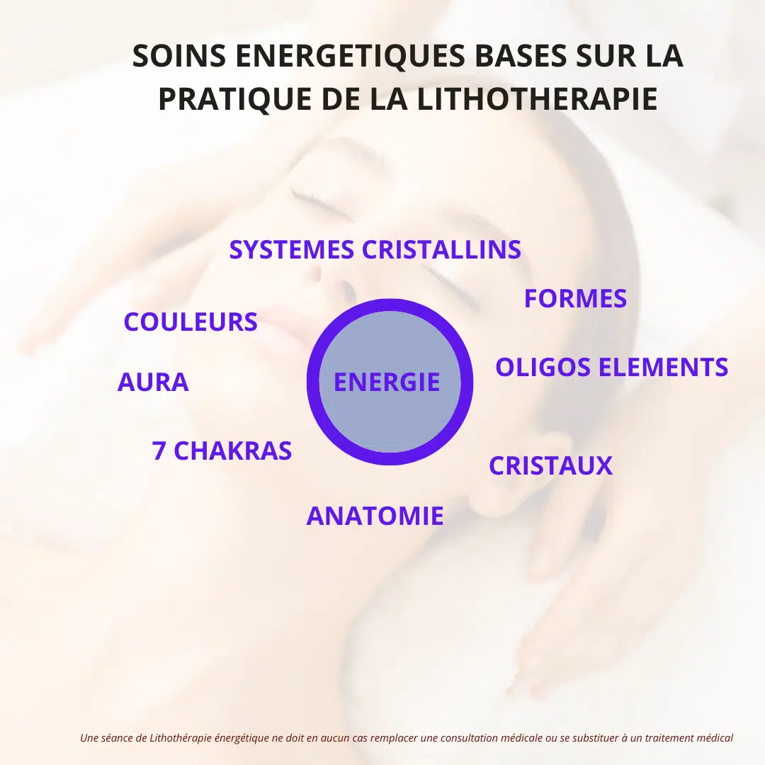 *La lithothérapie est une méthode douce qui se sert de l’énergie des pierres afin de rééquilibrer et réorganiser le corps. La lithothérapie consiste à travailler avec les cristaux qui canalisent l’énergie représentée par les 7 chakras et la transmettent afin d’améliorer votre santé physique et mentale, votre bien être émotionnel et votre développement spirituel.