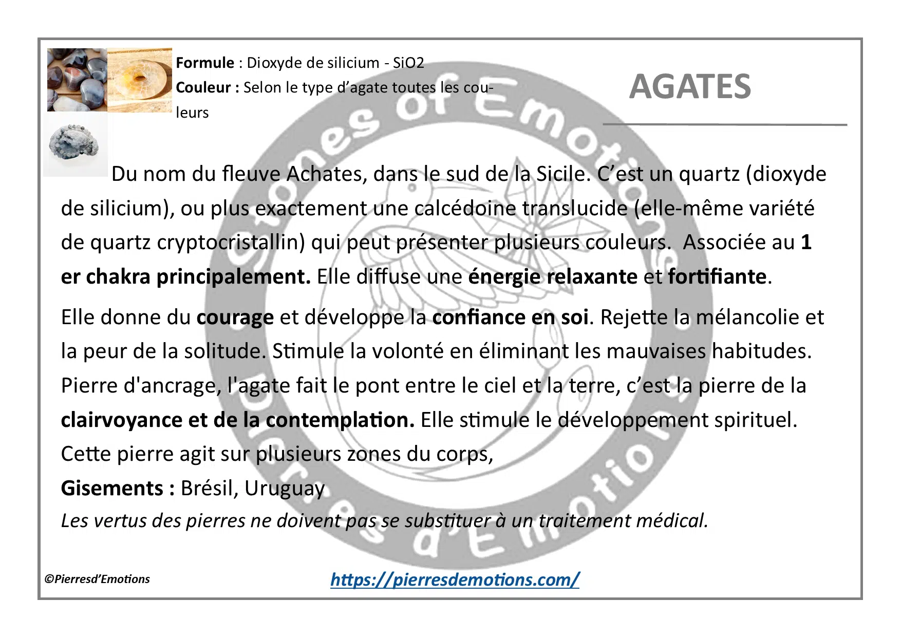 Attention : Les vertus des pierres ne doivent pas se substituer à un traitement médical.