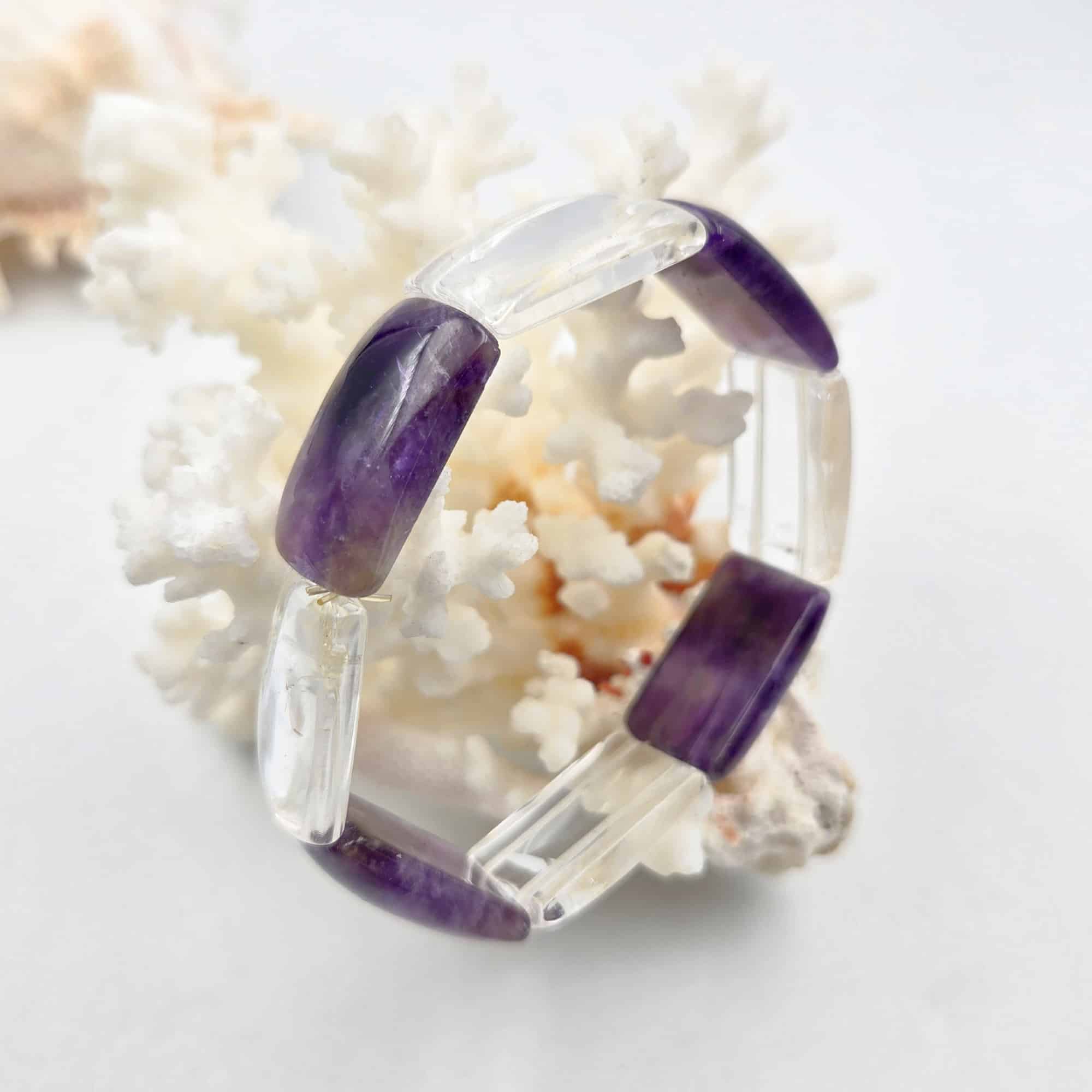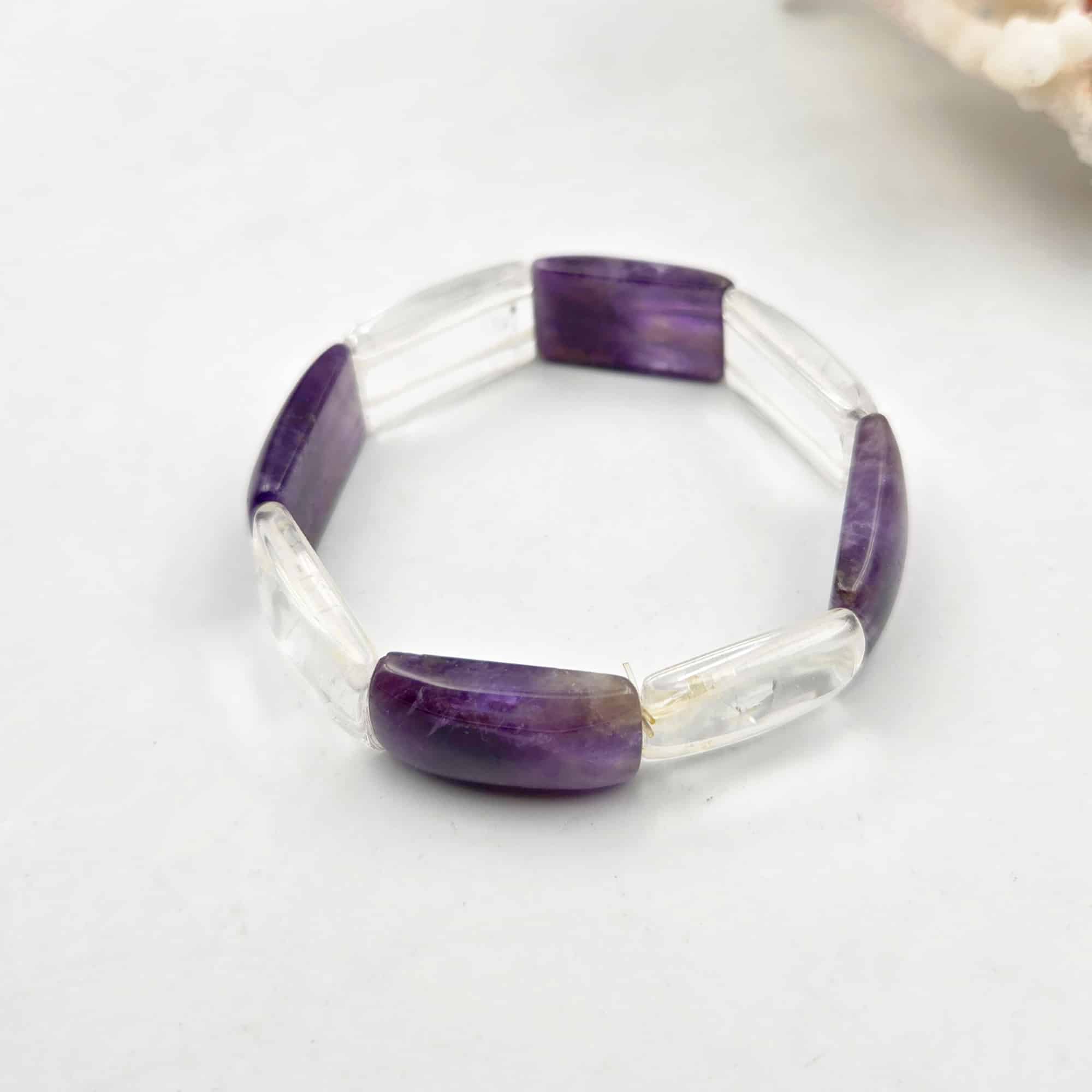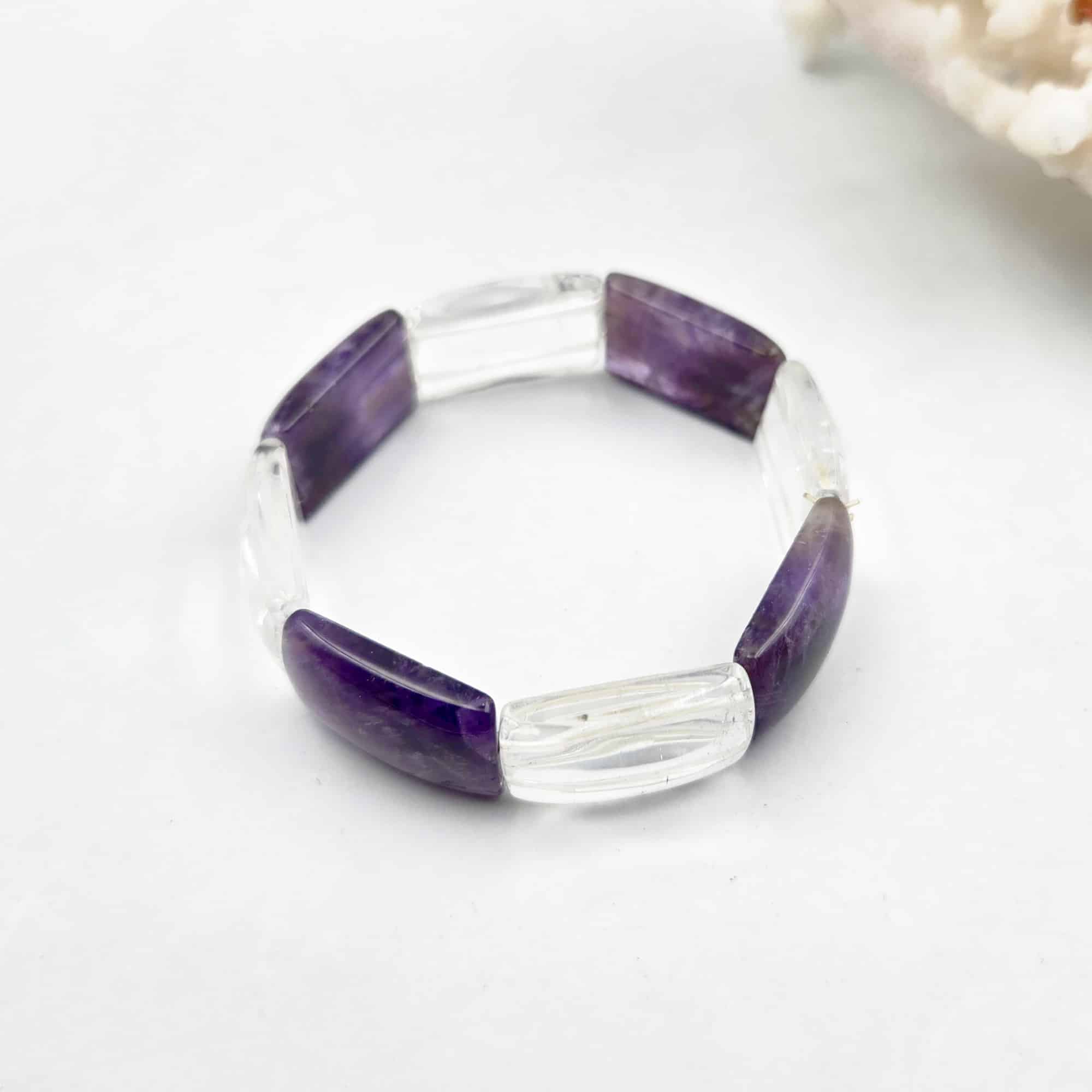 AMETHYSTE et CRISTAL de ROCHE – Bracelet avec des cabochons