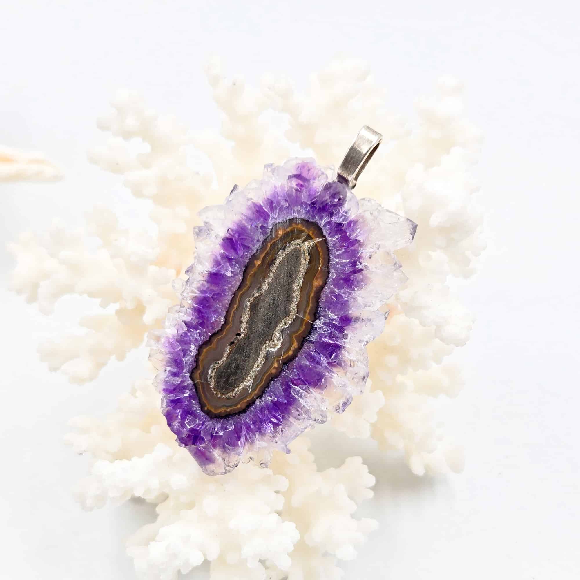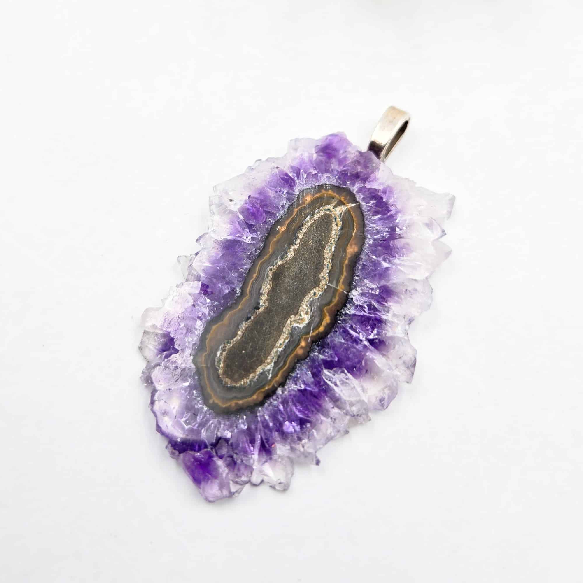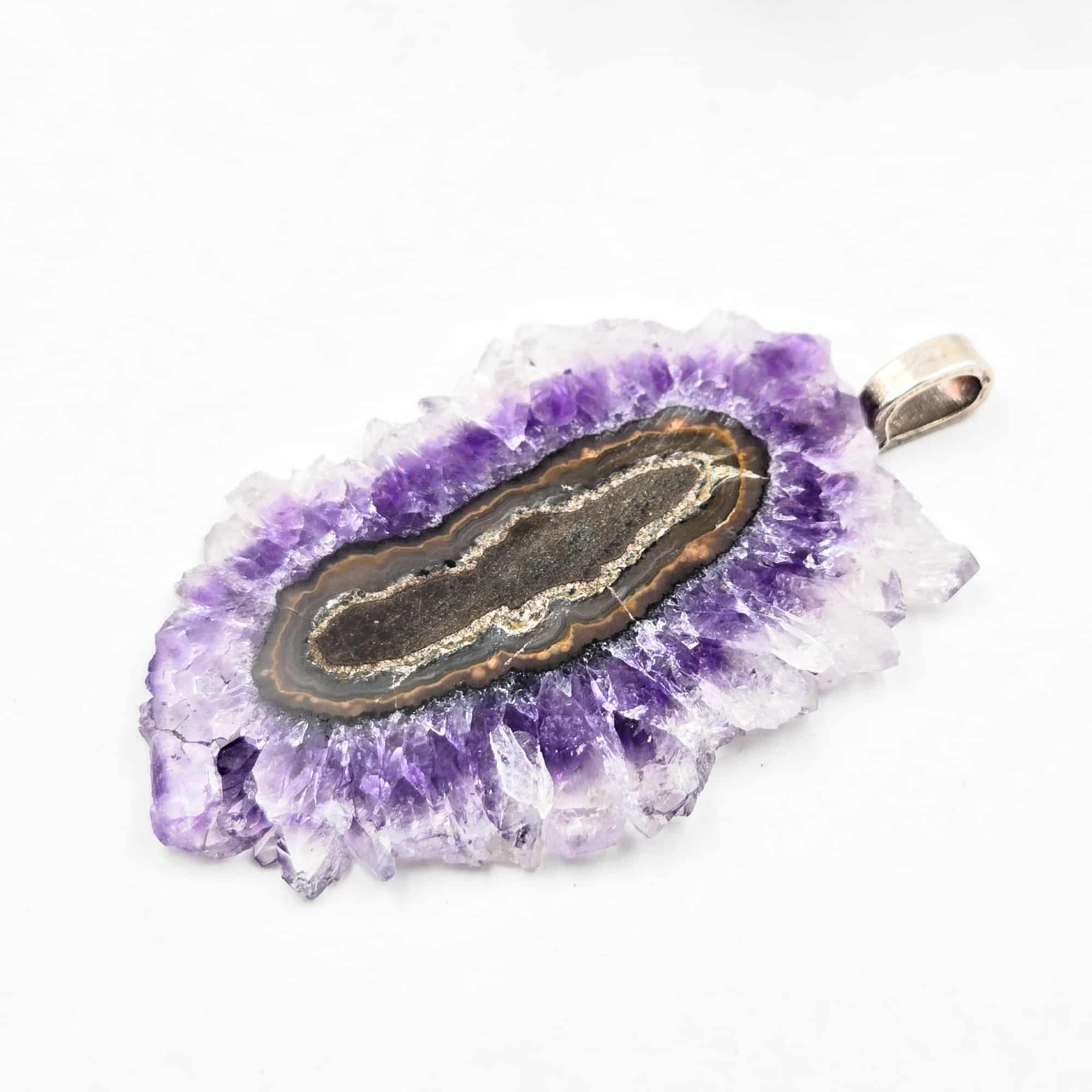 Tranche de Fleur d’améthyste montée en pendentif. Possible de monter d’autres tranches sur demande