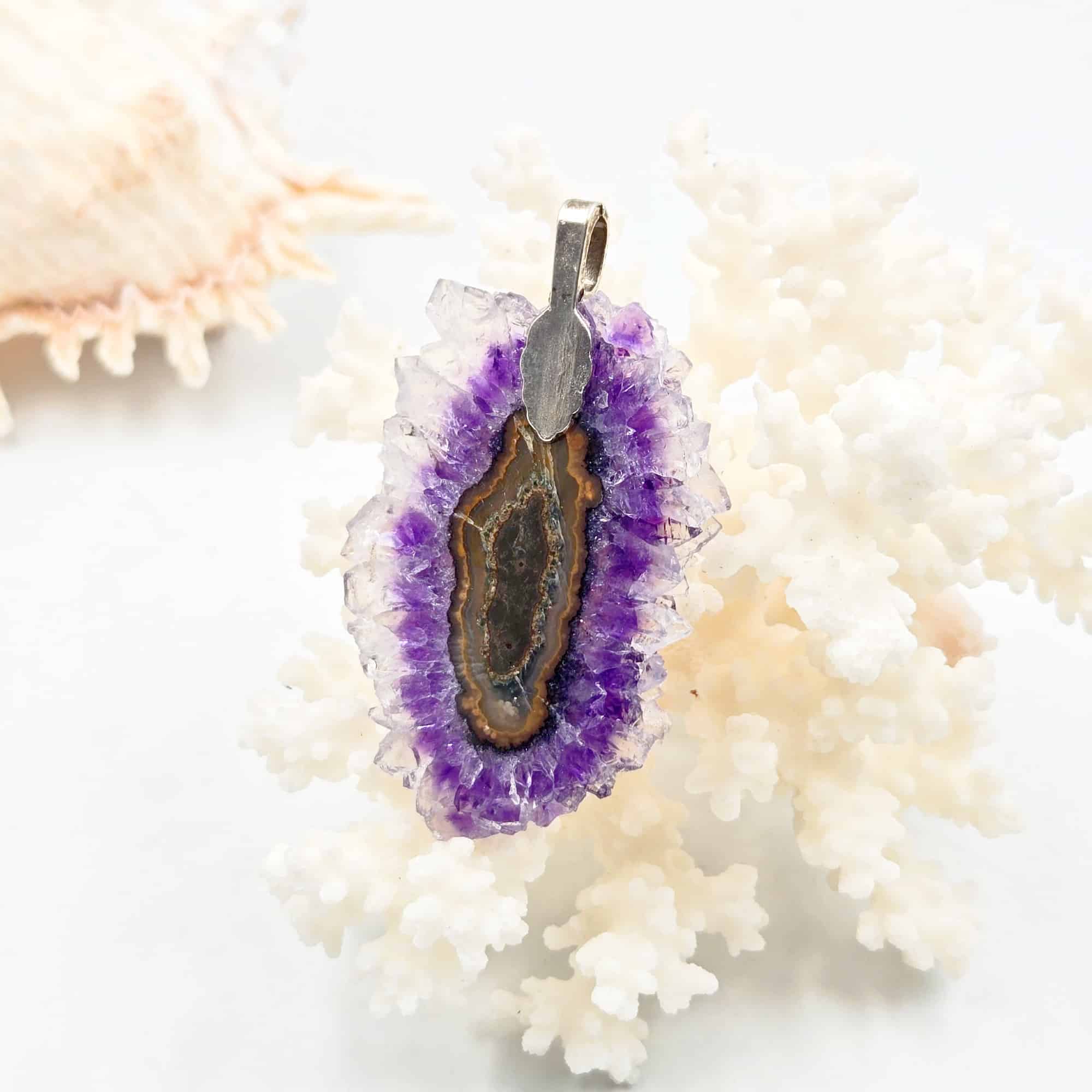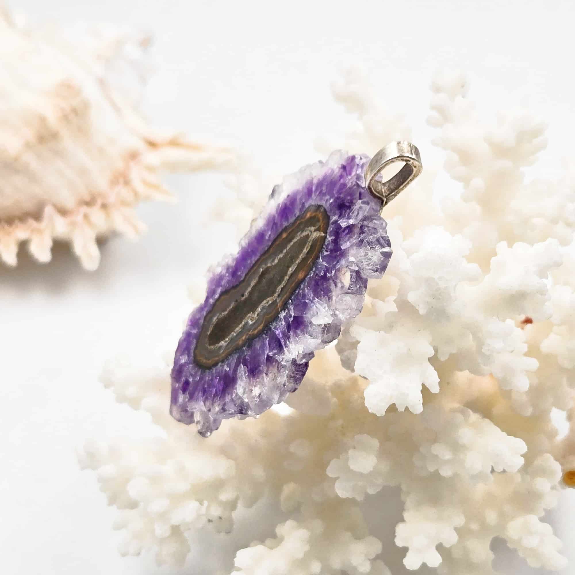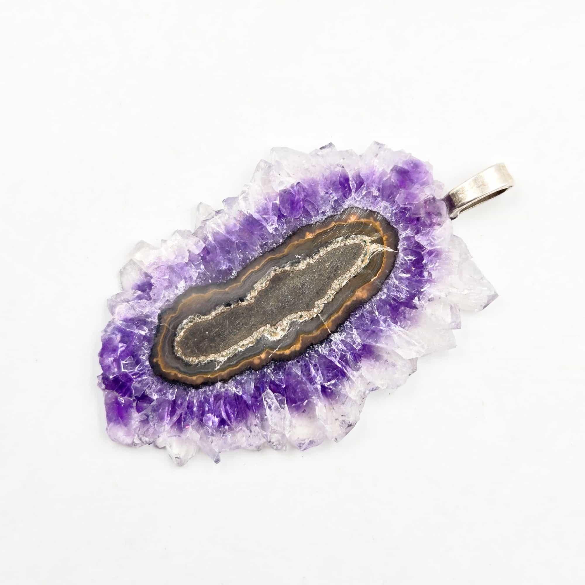 Tranche de Fleur d’améthyste montée en pendentif. Possible de monter d’autres tranches sur demande